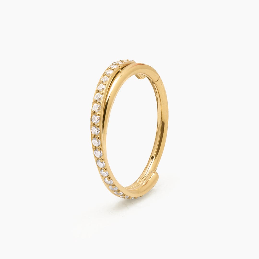 Material: Titanio Grado Implante F136. Revestimiento: PVD Oro 18K. Piedras: Zirconia Cúbica 5A. Cantidad: Unidad. Diámetro Interno: 12mm. Grosor Barra (Gauge): 1.2mm. Tipo de Cierre: Clicker. Zona para Usar: Daith, Hélix, Conch. Anodizado: No apto. Los piercing con recubrimiento de oro no deben anodizarse.
