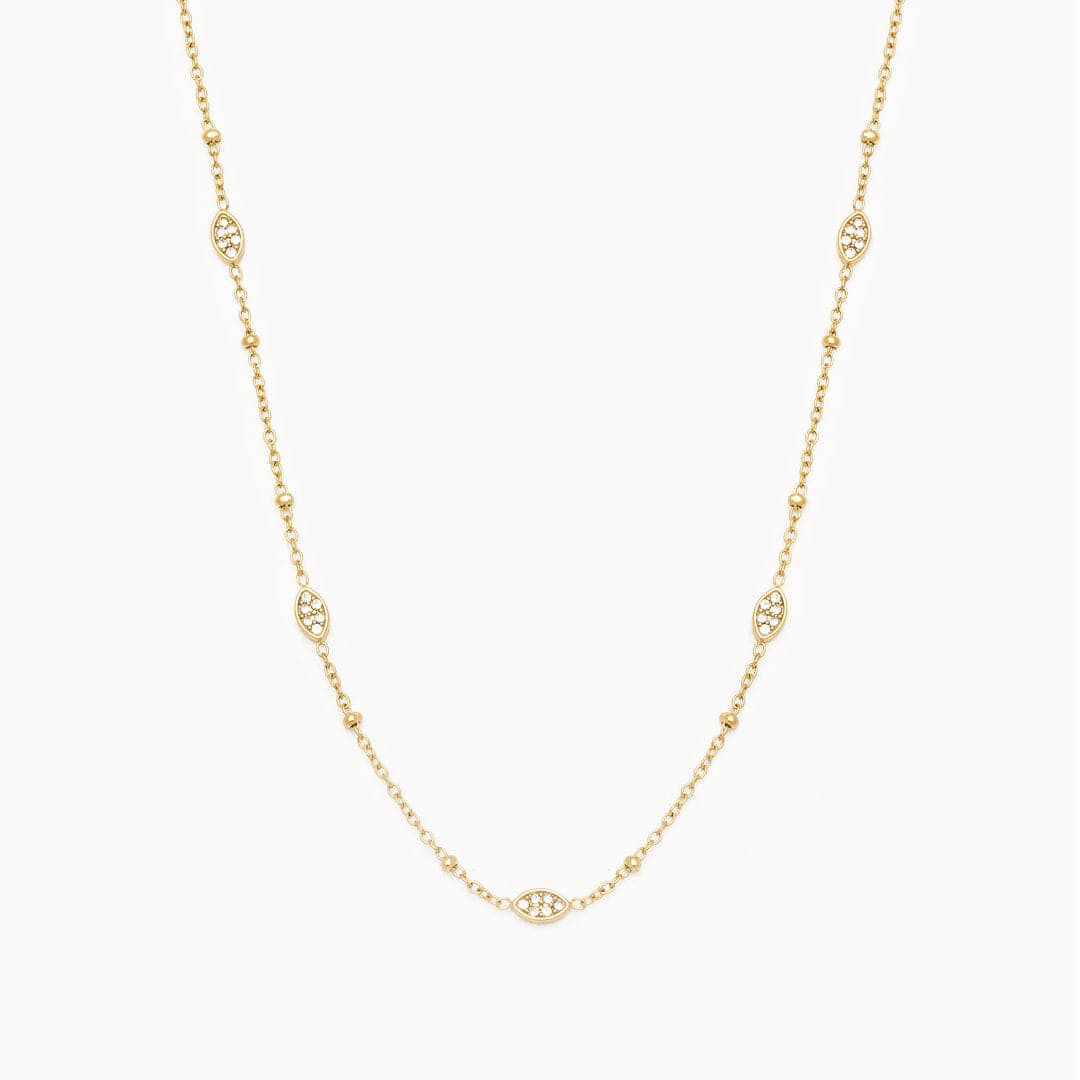 Material: Acero Inoxidable. Piedras: Circonita.Acabado: Revestimiento PVD Oro 18k. Largo Cadena: 40cm. Ancho Cadena: 1.2mm. Extensión: 6cm. Dijes: 0.6cm x 0.3cm. Sistema de Cierre: Broche.